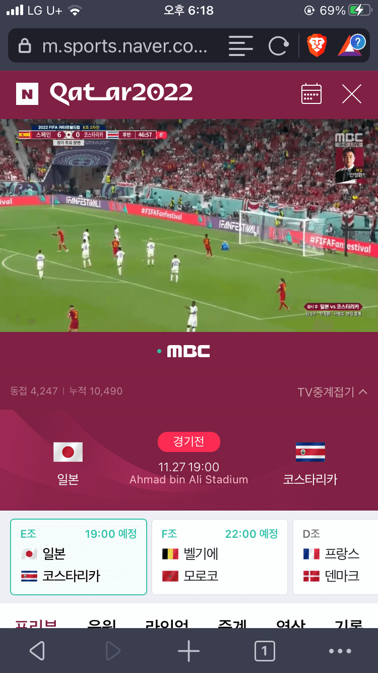 요즘 월드컵 중계로 네이버 티브이로 경기를 보는데 여기서 붙어 나오는 광고는 나오지 않고 계속 경기를 볼 수 있어서 좋더라고요.