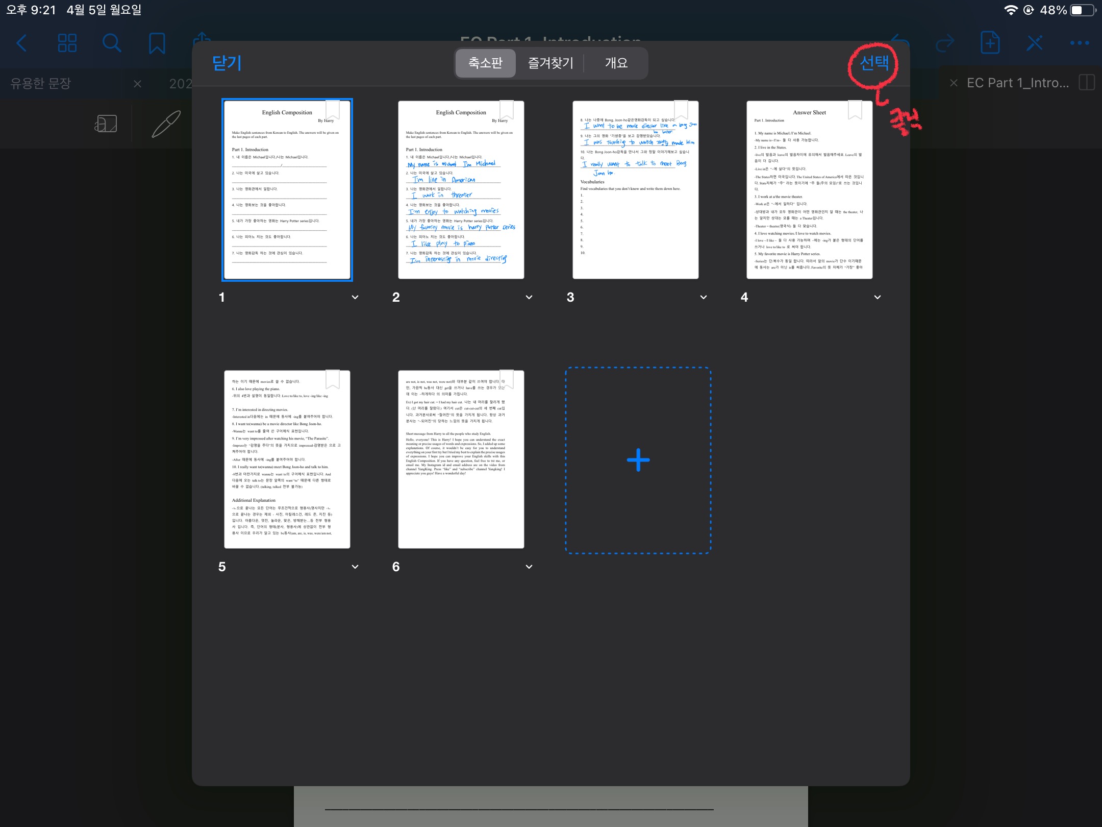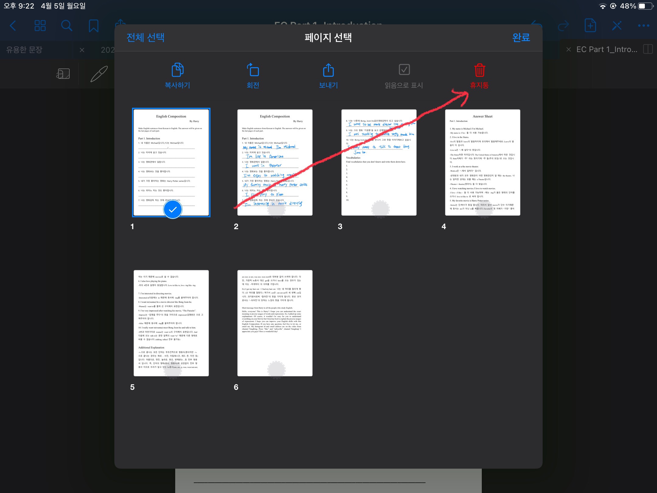 선택을 누른 후 필요없는 페이지를 눌러줍니다