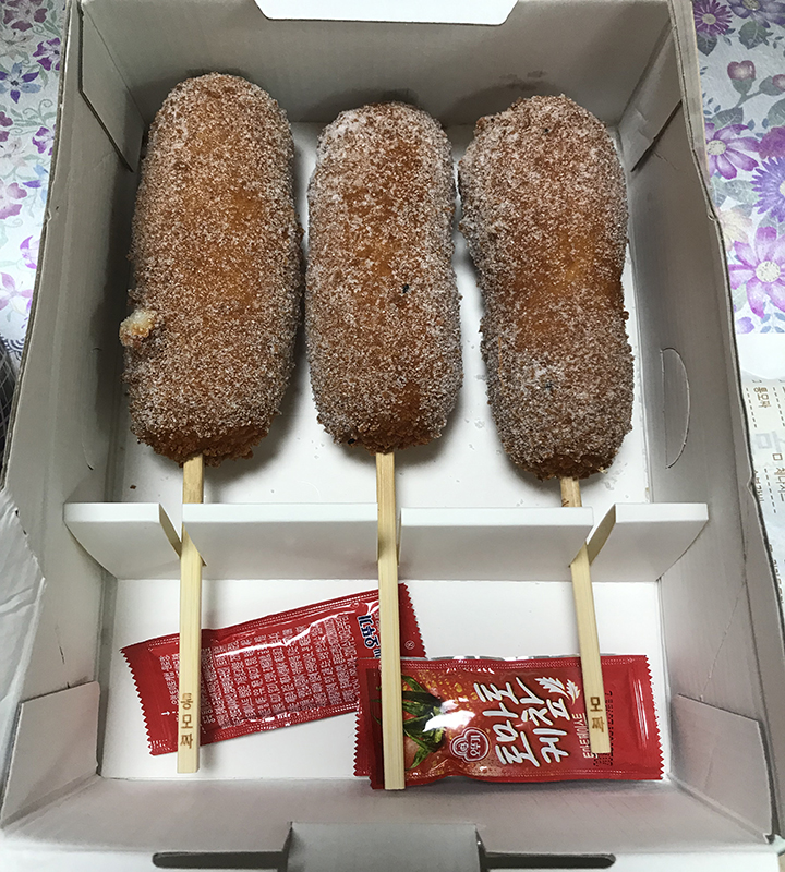핫도그는 통모짜핫도그,통가래떡핫도그,모짜렐라핫도그 세 가지로 시켰고요.