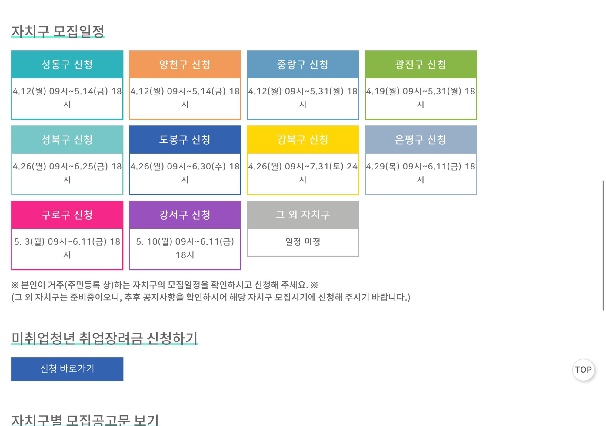 지원대상:만 19세 ~ 34세 서울시 거주, 미취업자 중 최종학력 졸업 후 2년 이내인 자