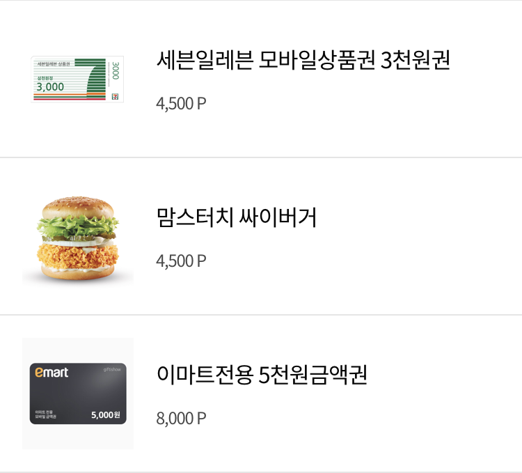 많은 기프트콘이 있지 않지만 간식으로 먹은 상품들이 있다.