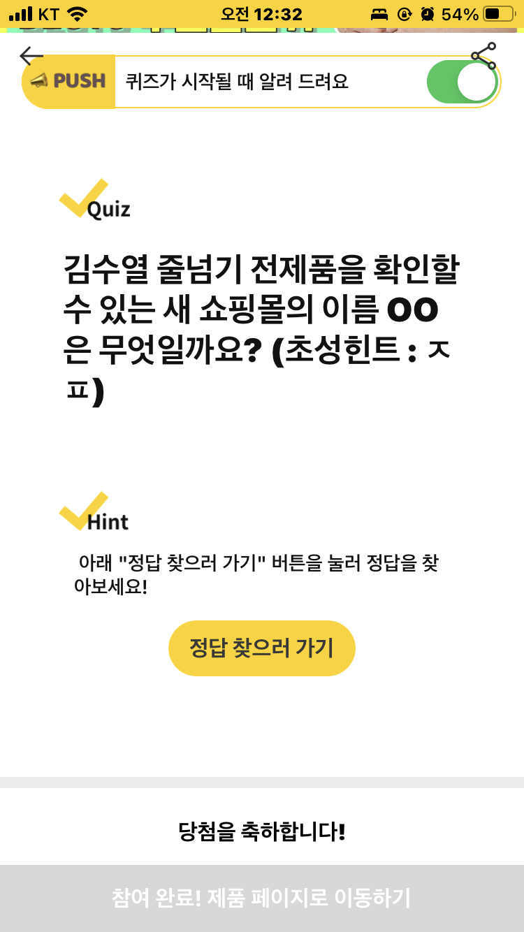 김수열 줄넘기 전제품을 확인할 수 있는 새 쇼핑몰의 이름 ㅇㅇ은 무엇일까요? 힌트 ㅈㅍ
