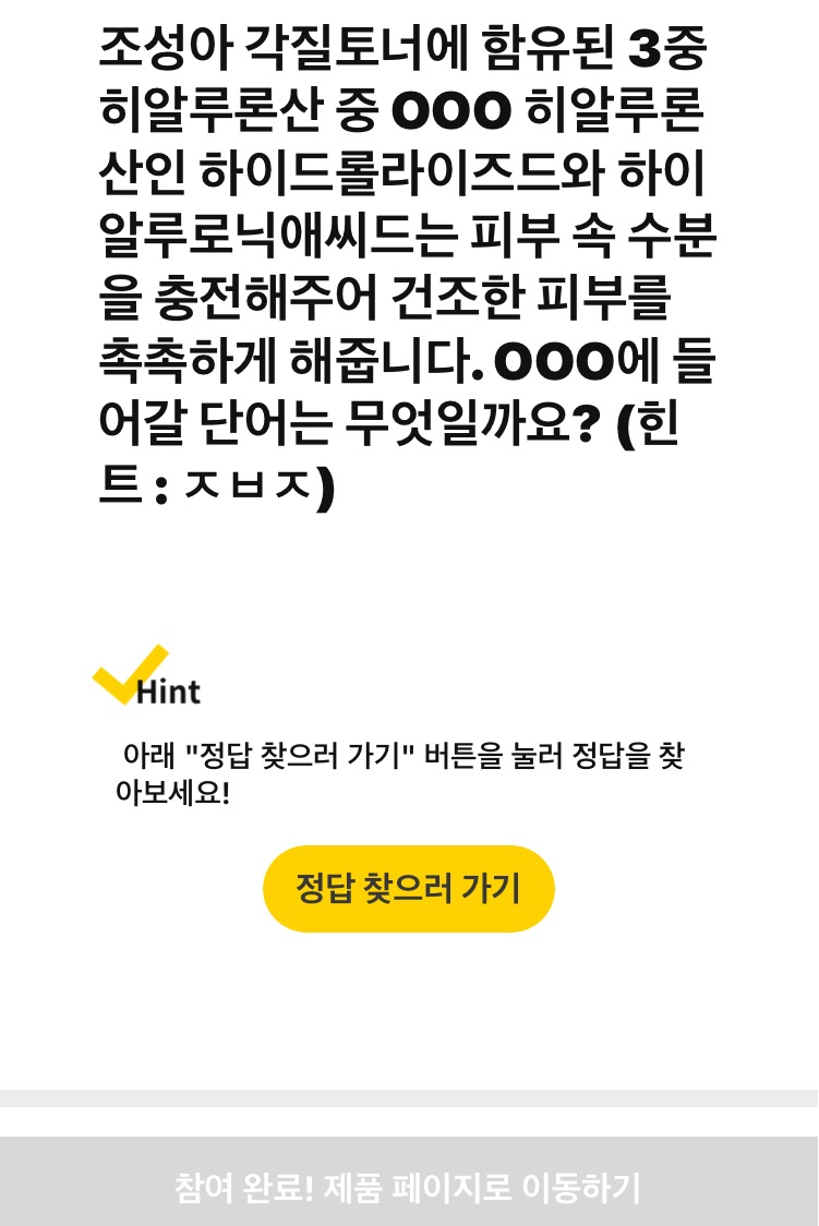 Q.조성아 각질토너 함유된 3중 히알루론산 중 OOO 히알루론산인 하이드롤라이즈드와