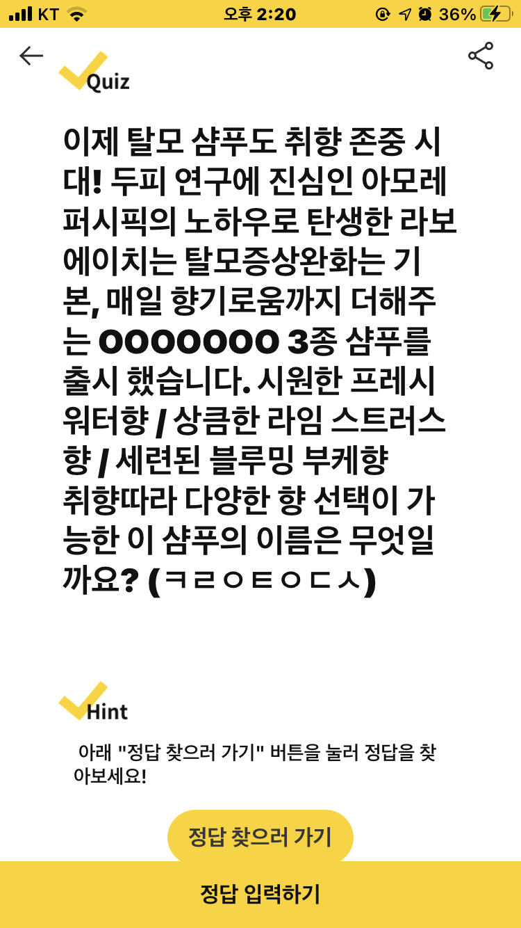 Q.이제 탈모 샴푸도 취향 존중 시대! 두피 연구에 진심인 아모레퍼시픽의 노하우로 탄생한 라보에이치는 탈모증상완화는 기본 매일 향기로움까지 더해주는 ㅇㅇㅇㅇㅇㅇ 3종 샴푸를 출시 했습니다