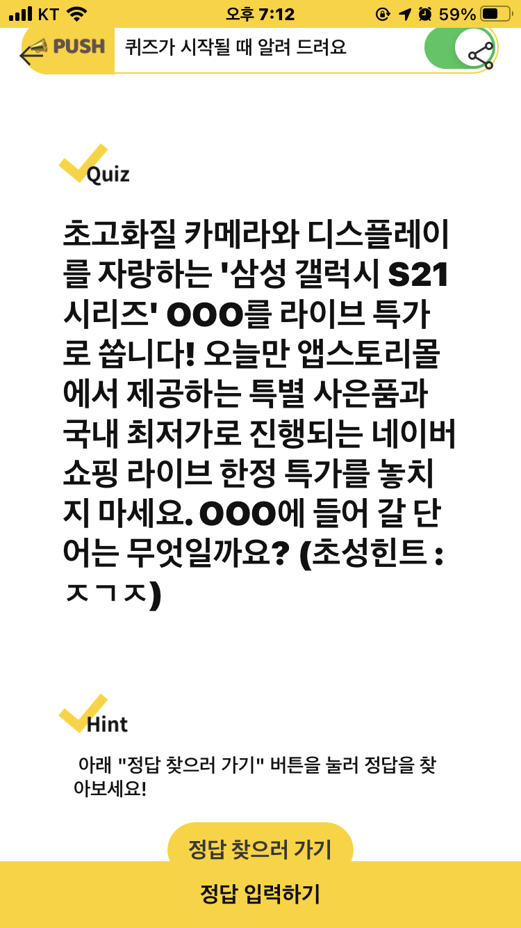Q. 초고화질 카메라와 디스플레이를 자랑하는 삼성 갤럭시 s21시리즈 ㅇㅇㅇ를 라이브 특가로 쏩니다
