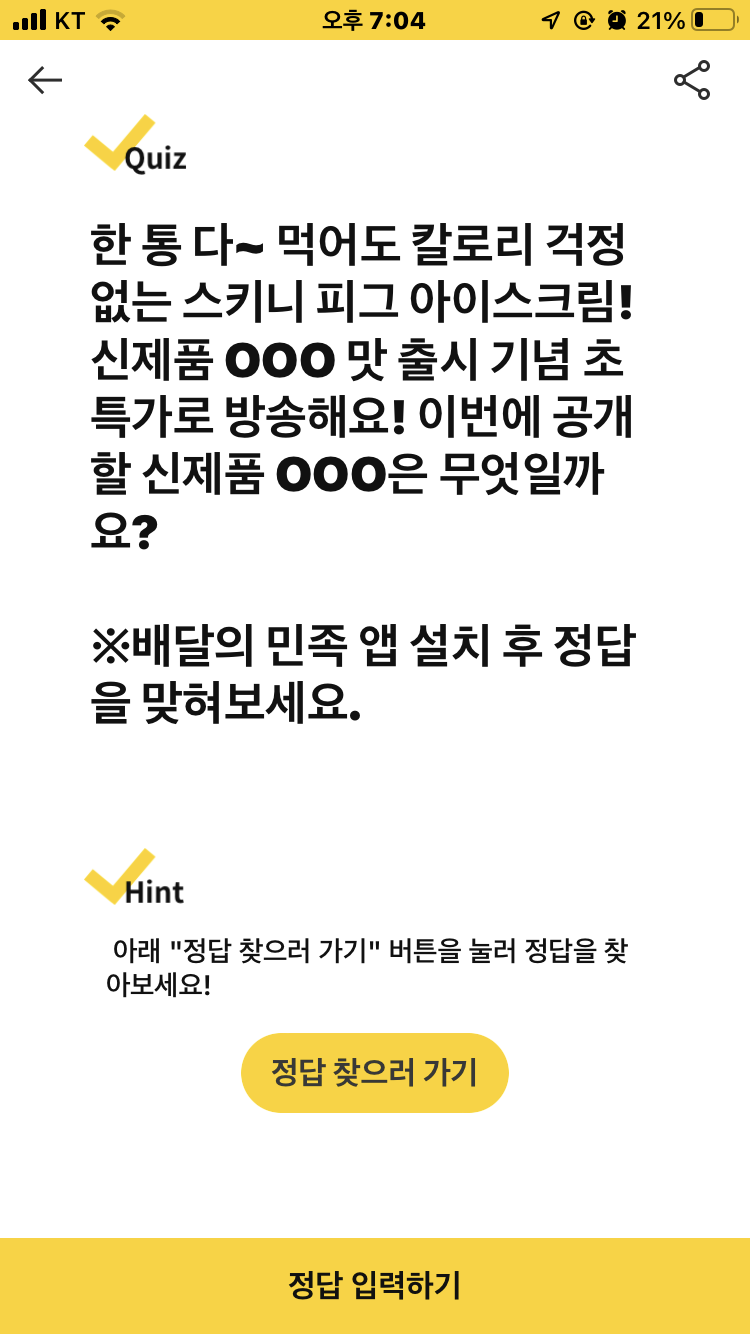 한통 다~ 먹어도 칼로리 걱정없는 스키니 피그 아이스크림! 신제품 ㅇㅇㅇ맛 출시 기념 초특가로 방송해요! 이번에 공개할 신제품 ㅇㅇㅇ은 무엇일까요?