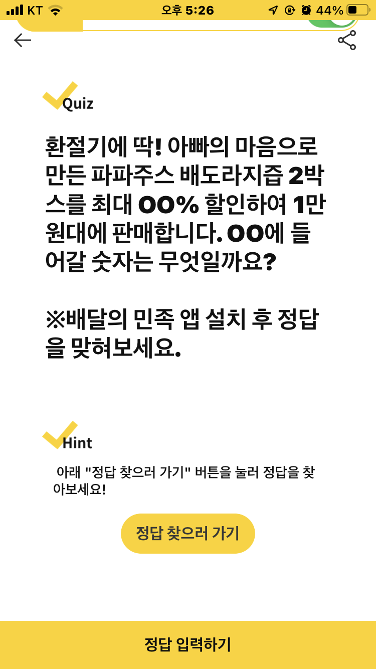 캐시워크 포만감이 느껴져 탄수화물 섭취를 줄이게 돼서 좋아요 ㅇㅈ 정답 (0) | 2021.09.29 |