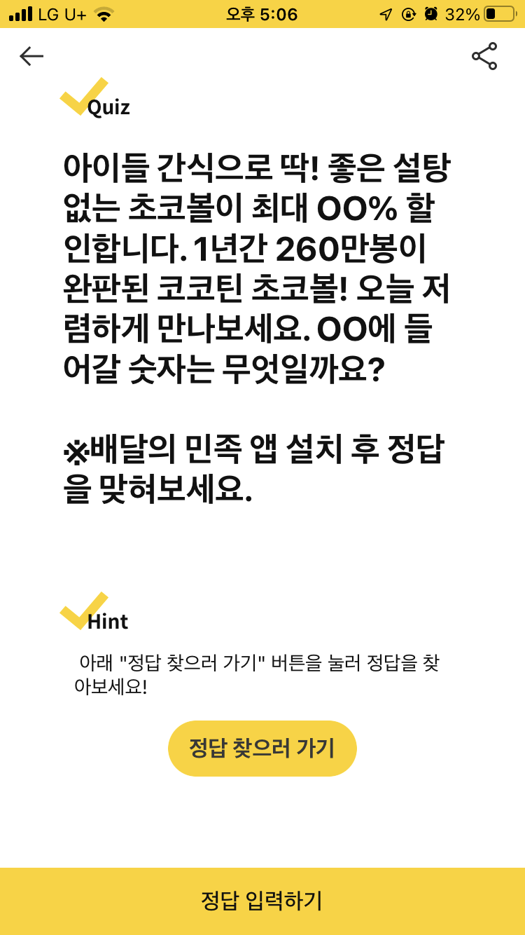 아이들 간식으로 딱! 좋은 설탕 없는 초코볼이 최대 ㅇㅇ% 할인합니다. 1년간 260만봉이 완판된 코코틴 초코볼! 오늘 저렴하게 만나보세요 ㅇㅇ에 들어갈 숫자는 무엇일까요?