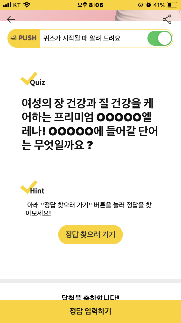 Q 여성의 장 건강과 질 건강을 케어하는 프리미엄 ㅇㅇㅇㅇㅇ엘레나 ㅇㅇㅇㅇㅇ에 들어갈 단어는 무엇일까요?