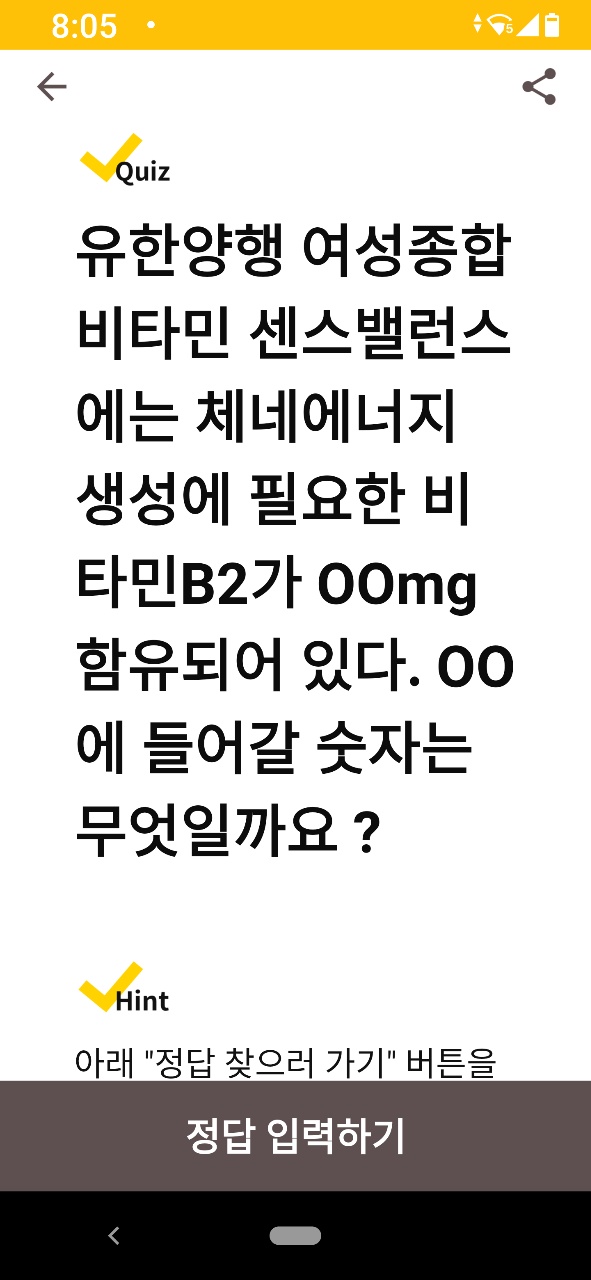캐시워크 유한양행 여성종합비타민 비타민B2가 ㅇㅇmg 정답
