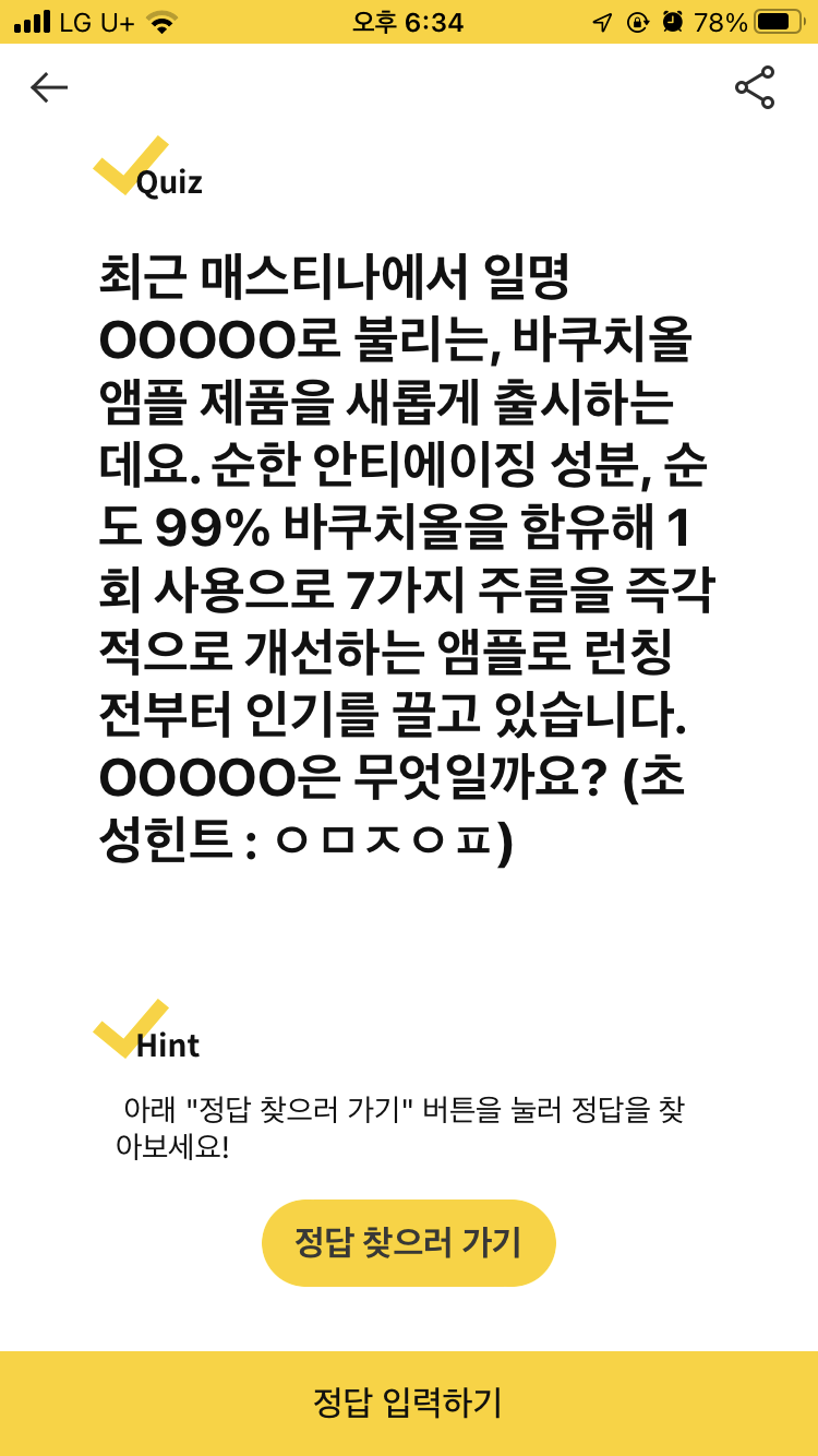 캐시워크 최근 매스티나에서 일명 ㅇㅁㅈㅇㅍ로 불리는 바쿠치올 앰플 제품 새로 출시 정답