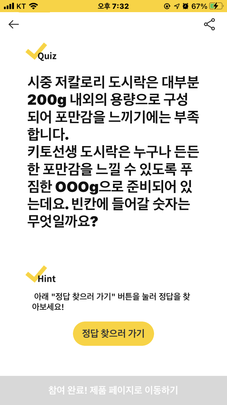 Q. 시중에 나와있는 저칼로리 도시락은 대부분 200g 내외의 용량으로 구성되어 성인 남성이 포만감을 느끼기에는 부족합니다.